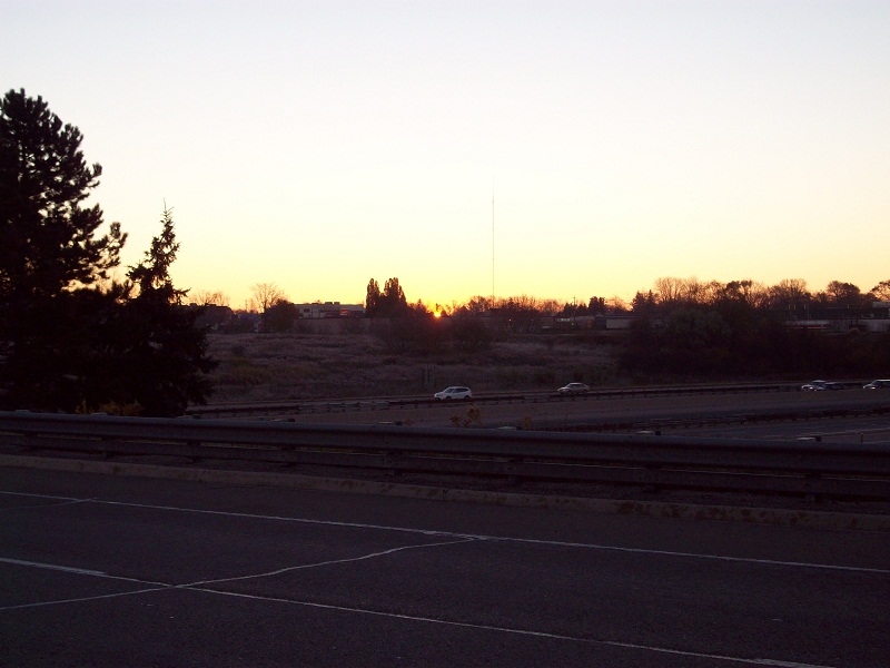Description: In a grove of evergreens, with three rows before a fence separating the park from Hogg Fuel (you can see a building in the background, towards the left of the centre of the picture).