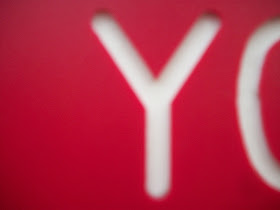 Description: White text on a red background with a capital Y in the centre and a half a capital O on the right.